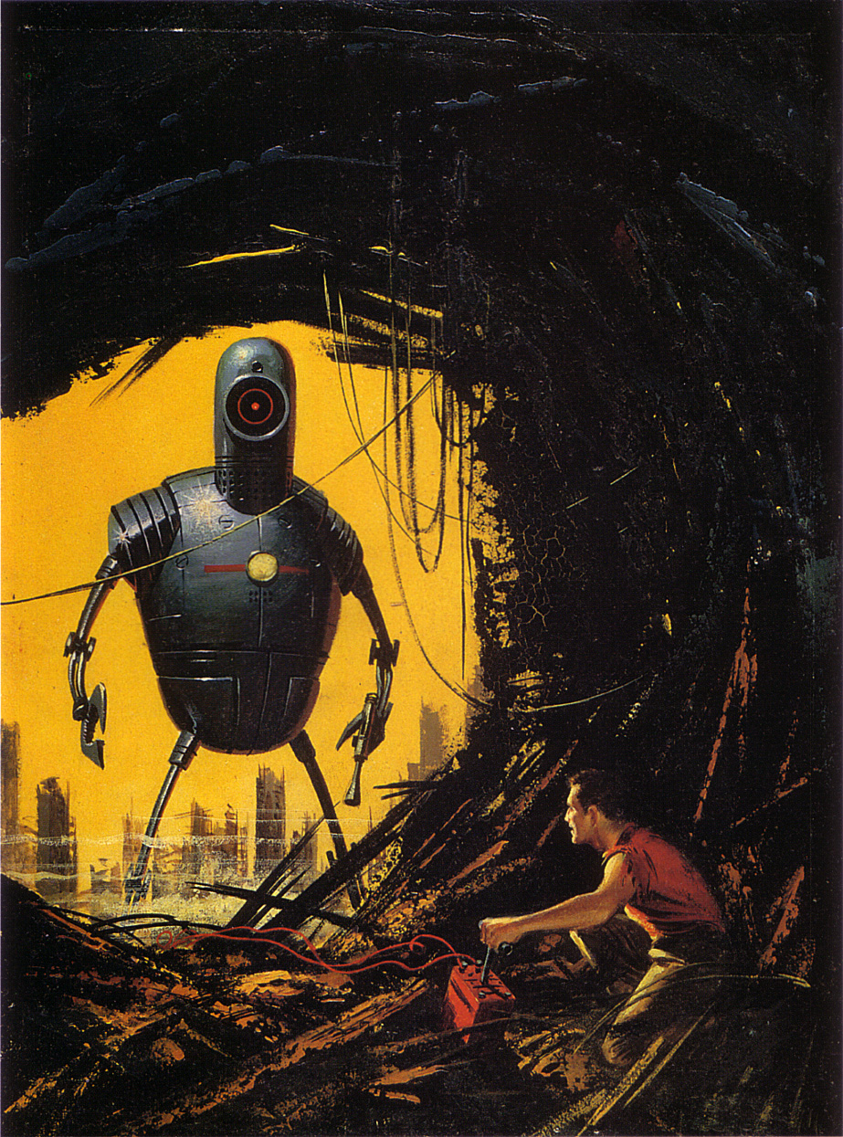 Along one side of the antechamber were metal coffins, with thick shielded cables that ran into an overhead conduit. The other side was dominated by a large screen, under which was a control board with numerous dials, knobs, and push-buttons. A crystal sphere, like the one I held, stood on a shoulder-high pedestal. At the back was a row of beds, unoccupied.