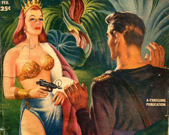 Our wayward hero struggles to comprehend the perils of an alien world and earns the notice of an empress. I went nearly crossed-eyed looking down the barrel
