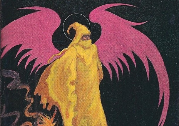 Doug took a step back, but Ward remained in place. They were still joined at the hand. The figure wore a yellow robe, like Cassilda’s, but a crown of thorns sat upon the head, and the mask covering the face was white and featureless aside from the mouth and eye slits. The robes billowed loosely, and the sleeves hung without arms inside. Doug was reminded of the sheet ghosts that people put on poles for Halloween.